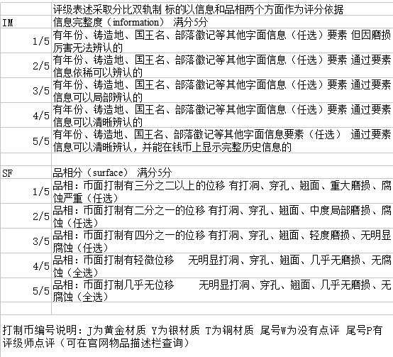 打制幣評級標準